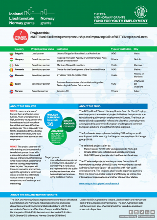 El proyecto eNEET Rural está cofinanciado con 1,5 millones de euros procedentes de Islandia, Liechtenstein y Noruega a través de EEA y el Fondo de Subvenciones para el Empleo Juvenil de Noruega