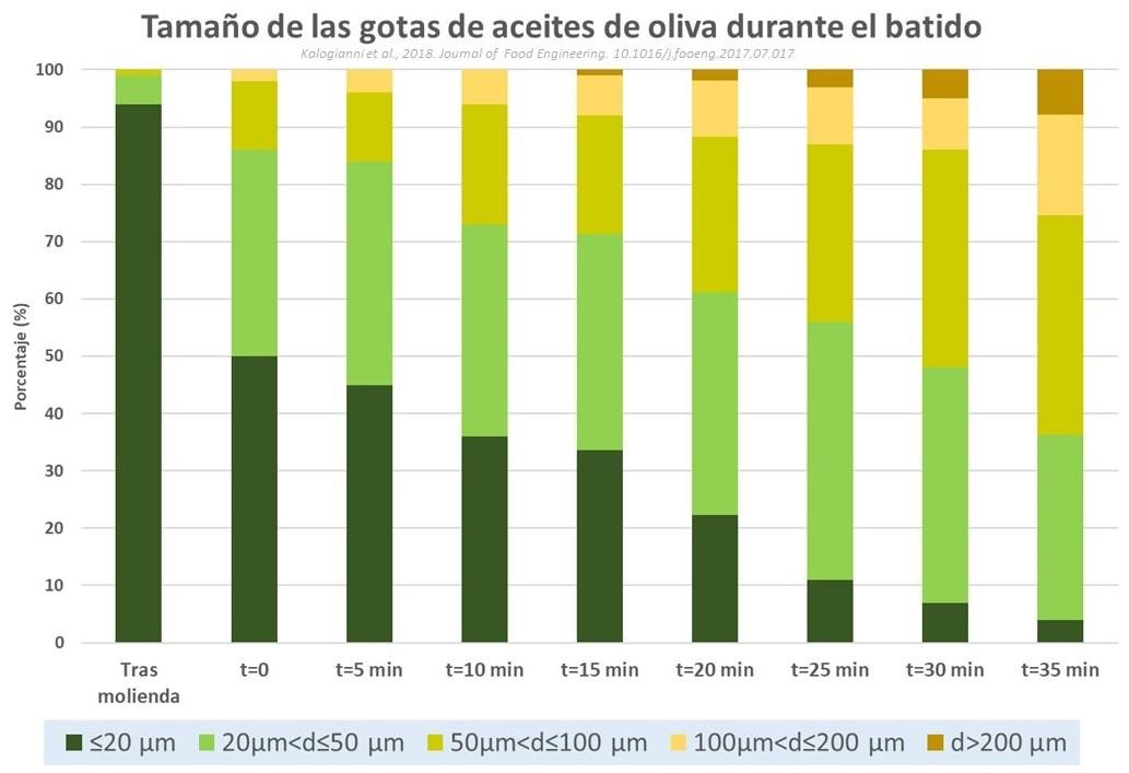 La coalescencia de las gotas de #aceite es el principal objetivo del batido, y el artículo de Kalogianni et al. (2019) (https://lnkd.in/g8J8D4b) muestra cómo cambia el tamaño durante el batido.
