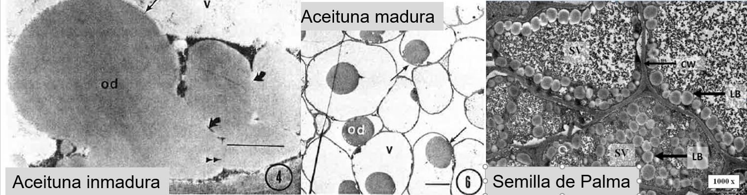 Parte de la “culpa” lo tiene el tamaño y estabilidad de los oleosomas. En el mesocarpo de la aceituna hay pocos y grandes oleosomas (10-20 micras), que se “fusionan” con la maduración; en cambio, las semillas, poseen un alto número de oleosomas de muy bajo tamaño (0,6-2,0 micras).