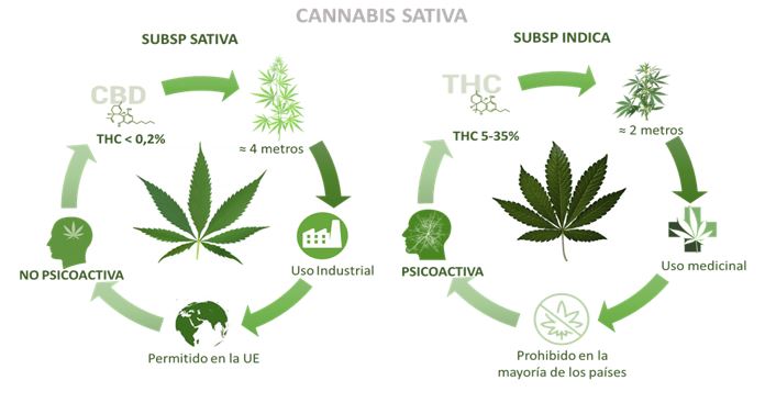 Figura 1. Subespecies de Cannabis sativa y sus diferencias más destacables.