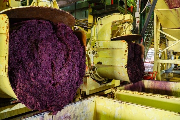 - Extracción de colorantes antociánicos: La enocianina se extrae normalmente a partir de los hollejos de uva tinta. Se utiliza como producto natural en bebidas, confitería, pastelería, farmacia, parafarmacia, etc.