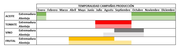 Temporalización de las campañas de producción en los sectores objeto de estudio