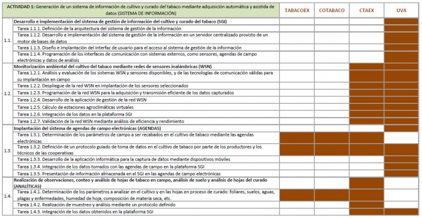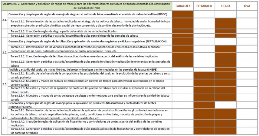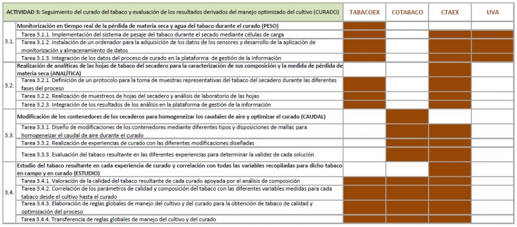 En este proyecto de I+D en Cooperación Nacional participan en consorcio TABACOEX, Sociedad Cooperativa Limitada de 2º Grado, que lidera el proyecto y la Sociedad Cooperativa Tabaquera Comunitaria COTABACO, las cuales cuentan con el apoyo de un centro tecnológico (CTAEX) y un organismo de investigación (Universidad de Valladolid)