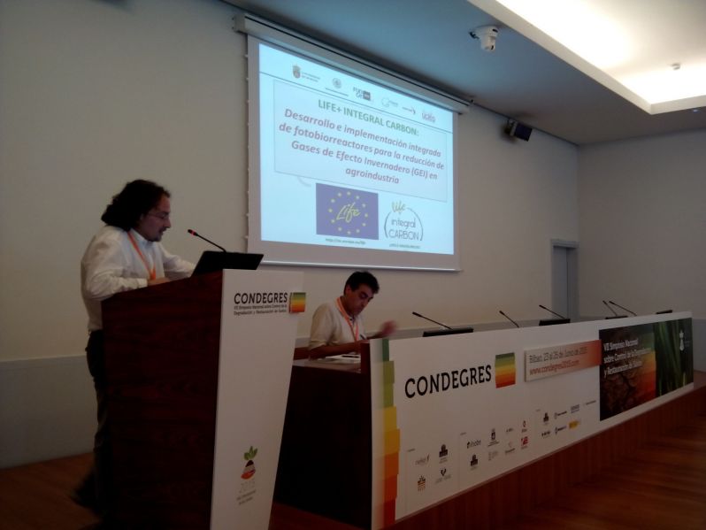 Entre las comunicaciones del Congreso, en el bloque dedicado a Secuestro de carbono y cambio global, se ha presentado la siguiente "LIFE+ INTEGRAL CARBON: ALGAS EDÁFICAS PARA COMBATIR EL CAMBIO CLIMÁTICO", publicada en el Libro de Comunicaciones del Congreso y cuya comunicación oral ha sido realizada por Carlos Rad.